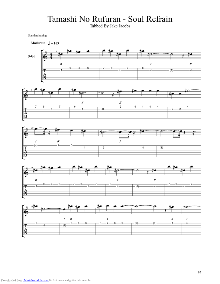 Neon Genesis Evangelion Soul Refrain guitar pro tab by Misc Cartoons from musicnoteslib.com